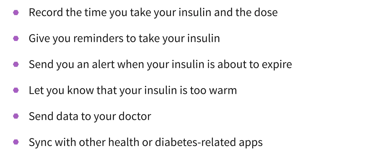 Smart insulin pen. Not only does this app-friendly tool deliver preloaded insulin with just a few clicks, it automatically tracks your doses. This lowers the chances you'll miss a dose or take too much.