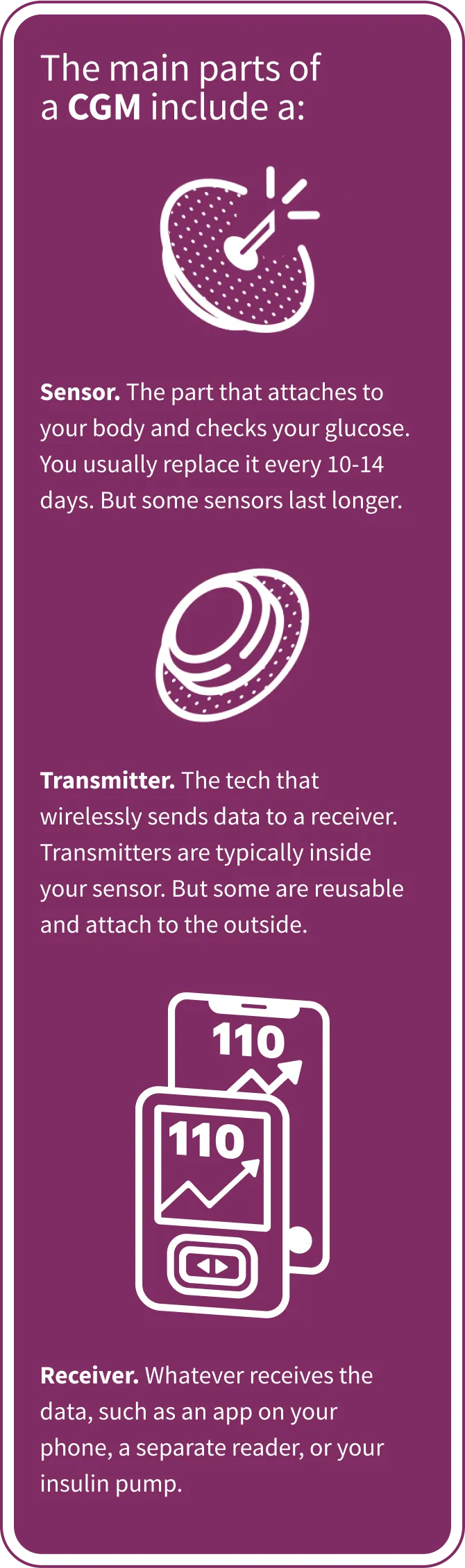 There's also a type of CGM that works with an implantable sensor. A health professional has to put in and remove this device. These sensors can last for months, but they're not used as often as the kind you can change out yourself.