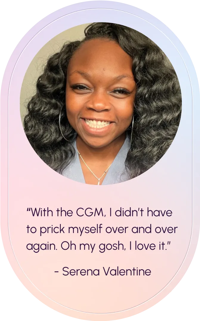 Valentine's-new endocrinologist gave her a Freestyle Libre 3 CGM sensor to use in the meantime. The device attaches to the back of her arm and checks her glucose every minute. The results go straight to her smartphone without the need to scan the sensor. Her doctor also linked his system to her account so that he can check on her blood sugars. "I didn't even know they could do that," says Valentine.